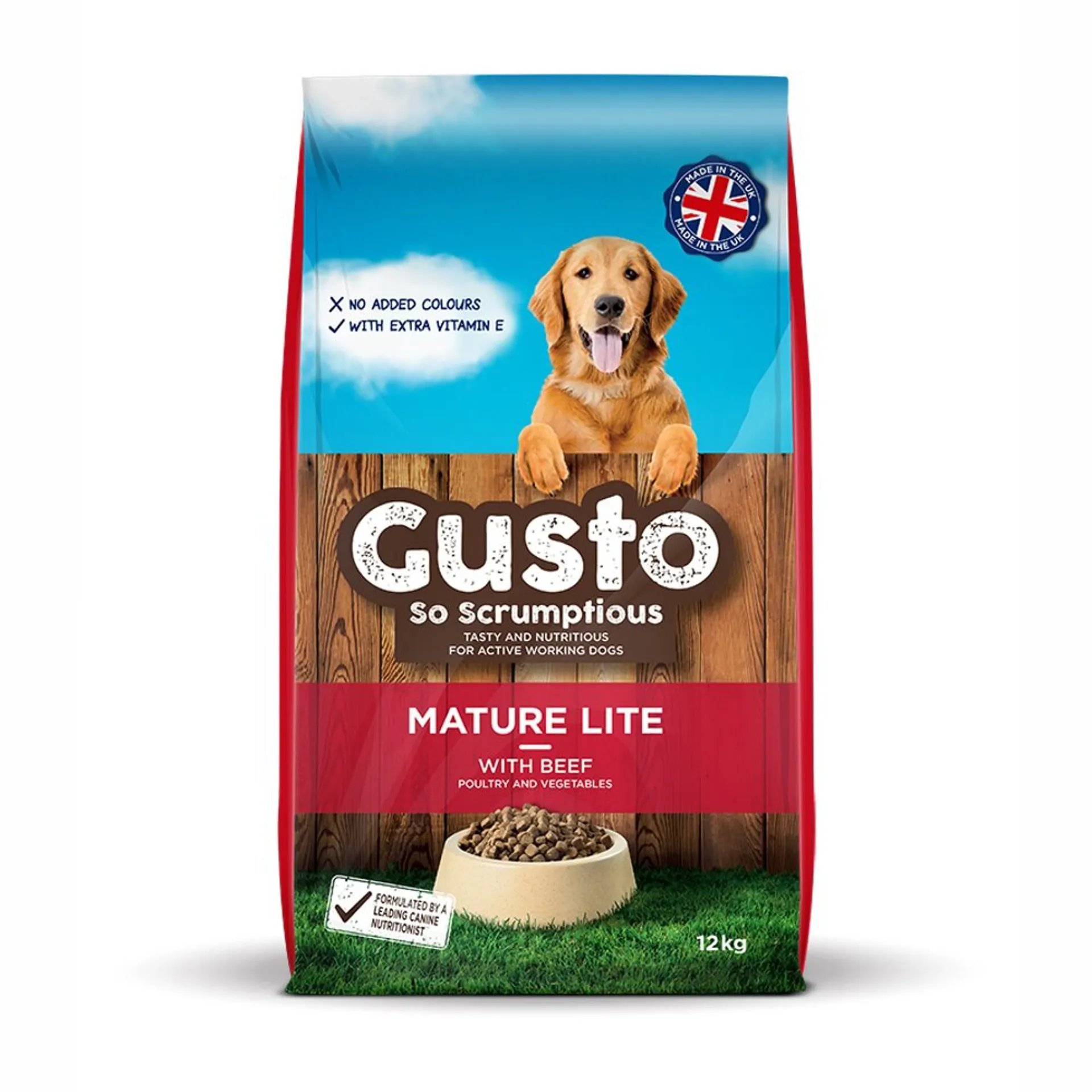 Gusto Mature Lite Dog Food is a delicious & nutritious recipe, rich in beef with added whole grain oats, vitamins and minerals. The food has been made with functional fibres to help support healthy digestion. Can be fed dry or moistened with water or gravy to the consistency your dog prefers.